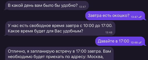 Назначит встречи