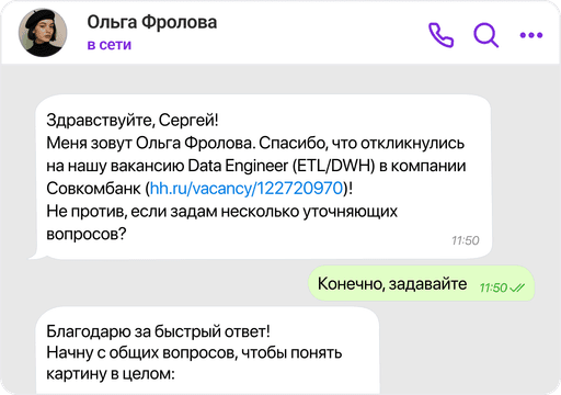 Да! NanoHire сам ищет кандидатов на HeadHunter, Avito, в WhatsApp и соцсетях - не ждет откликов, а делает персональные предложения тем, кто подходит, но сам бы не написал. Это сильно расширяет воронку, особенно на сложных вакансиях.